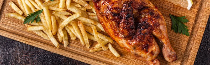 Meals are served with your choice of fries, peri fries or peri rice and a can of drink. -